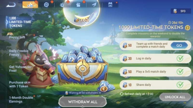 Tokens menjadi bagian penting dari sistem ekonomi dalam game. Pemain membutuhkannya untuk membeli konten eksklusif seperti skin, efek recall, dan hero baru. Di setiap musim, HoK selalu menghadirkan event yang memungkinkan pemain menukarkan Tokens dengan hadiah menarik. Akibatnya, kebutuhan top up meningkat tajam, terutama menjelang event besar seperti Anniversary Festival atau Hero Launch Week.